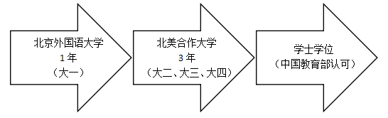 本科1+3:参加实验班的学生在北外完成大一课程,之后转入北美合作学校继续学习剩余的本科(约三年),获得受教育部认可的国外大学学士学位。